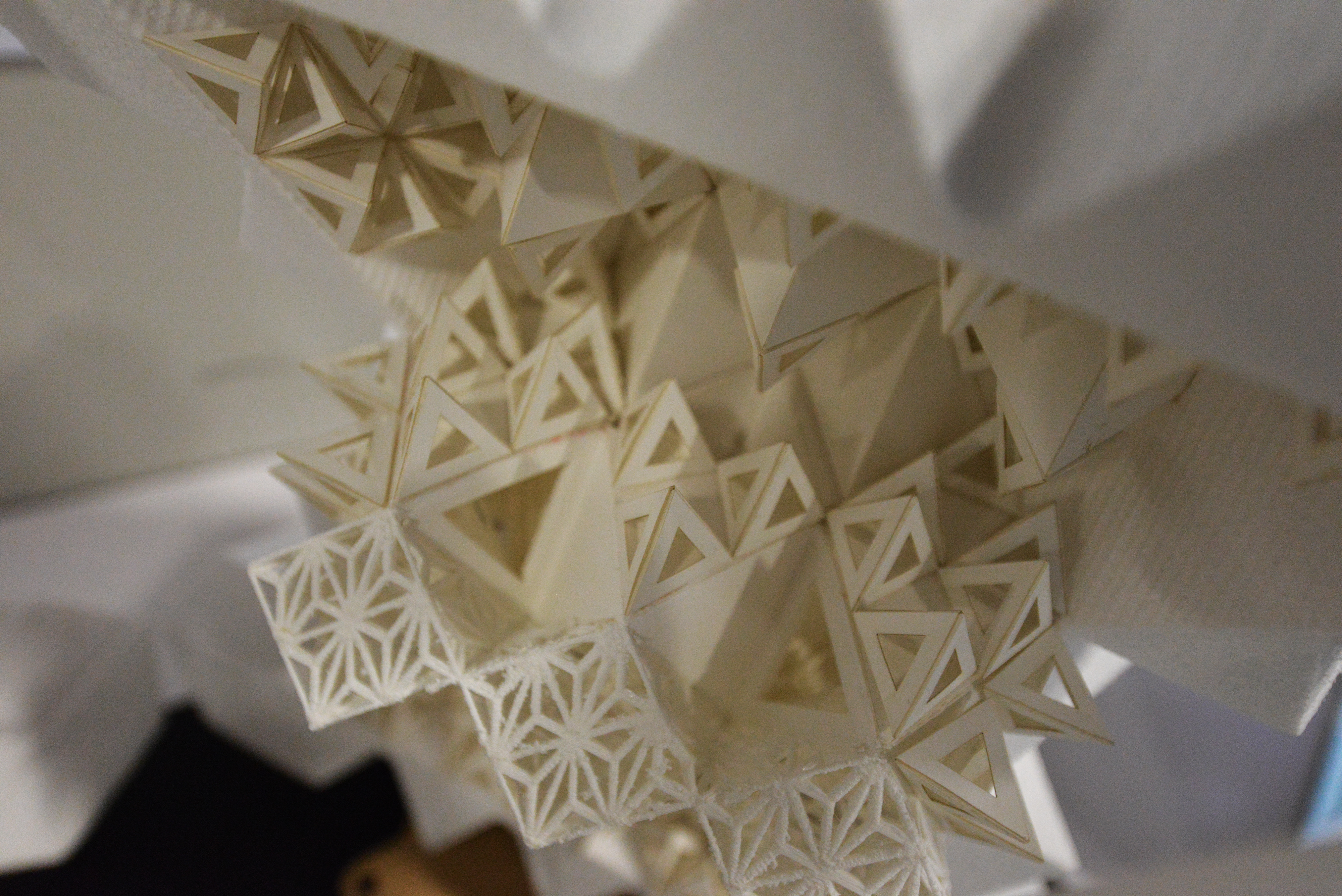 Using PLA, modeling styrofom and paper, we explored the ways of fabrication methods. Each one of the methods has been utilized to create different parts of the geometry depending on the advantages inherent in the fabrication