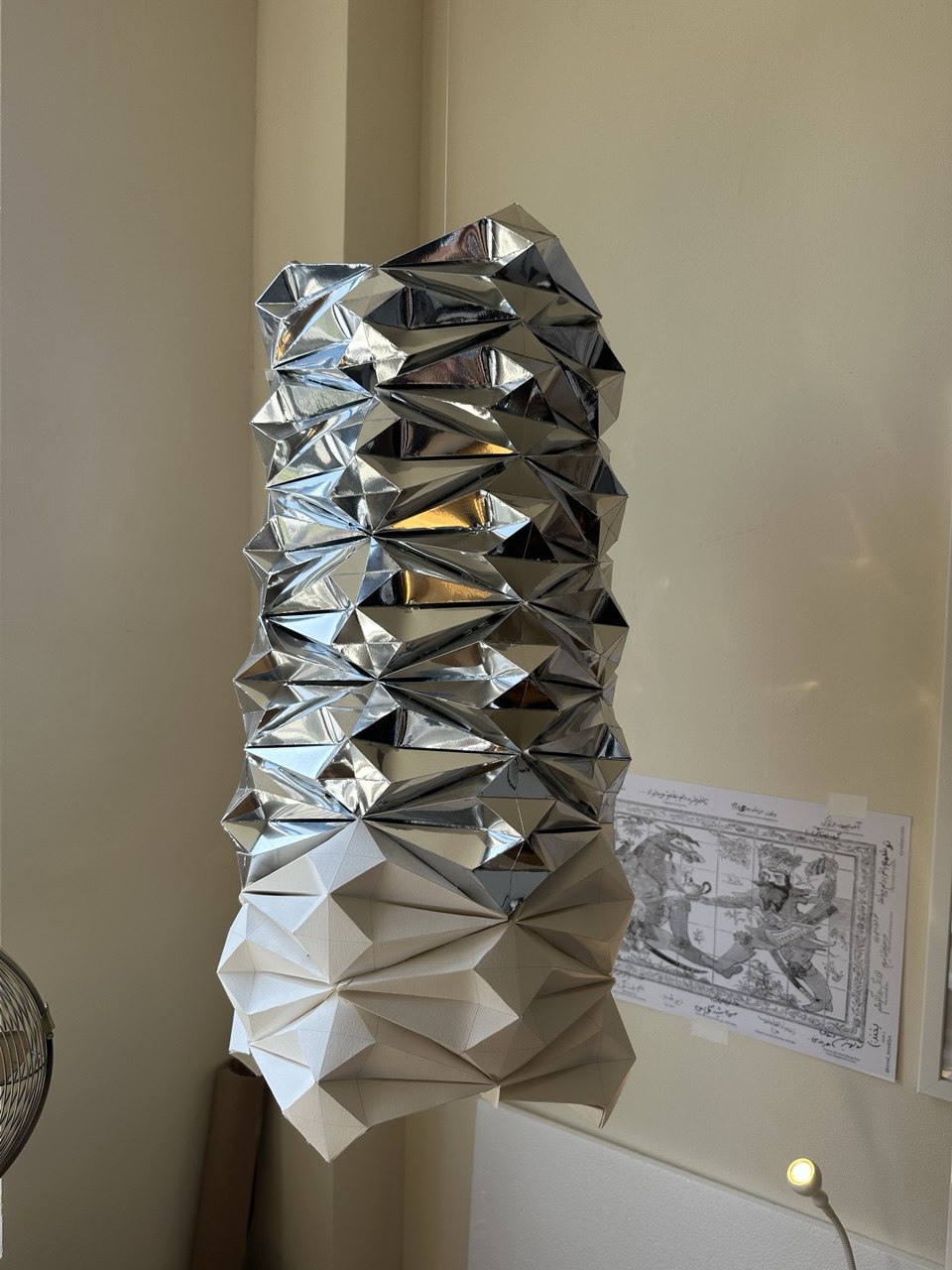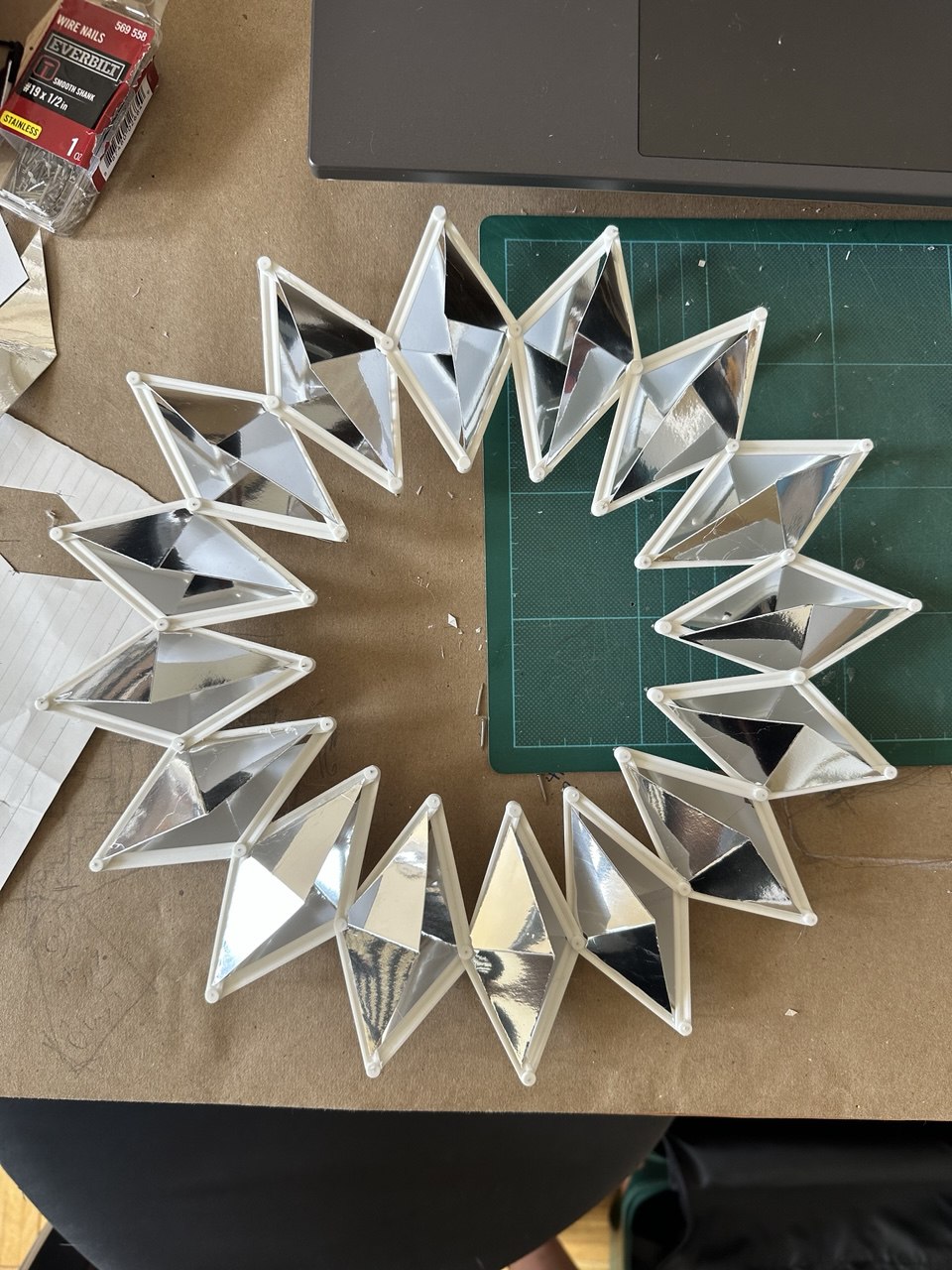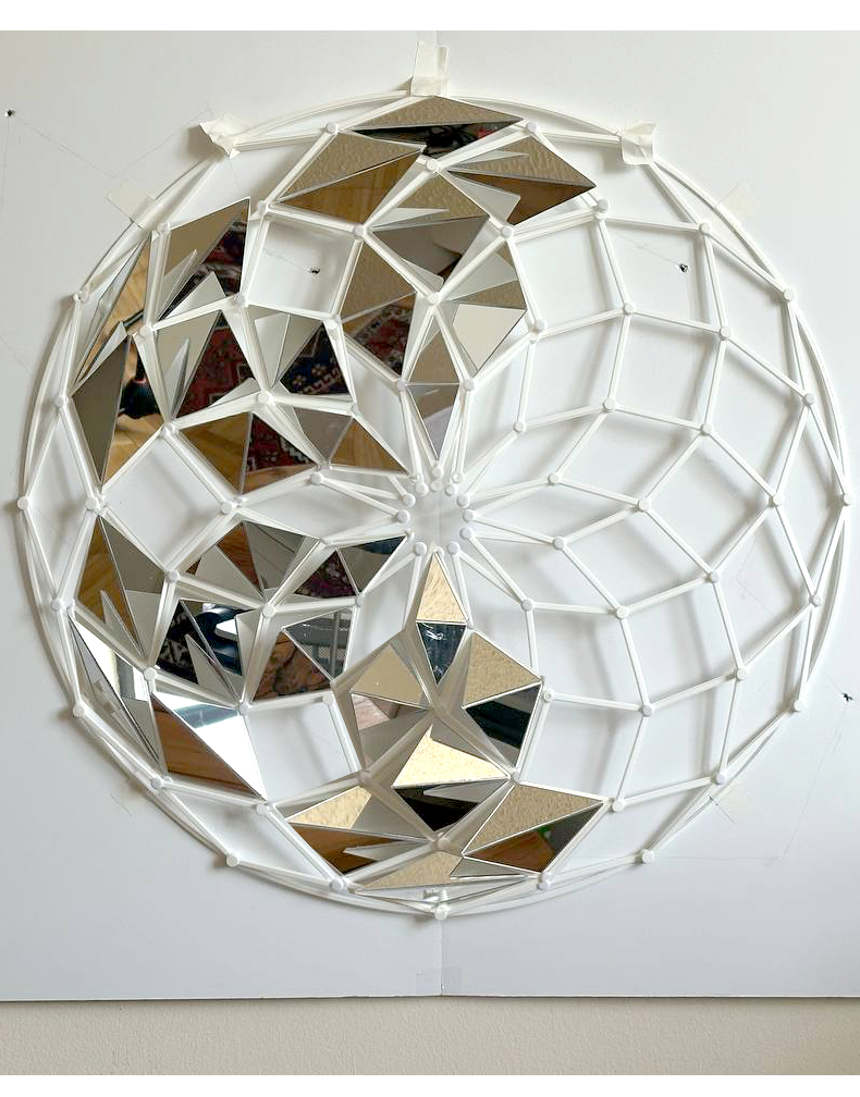 I am making a series of kinetic installations that respond to rhythm through moving joints and facets. I start with a kinetic dome, slightly concave and built with tessellations inspired by Iranian dome craft.